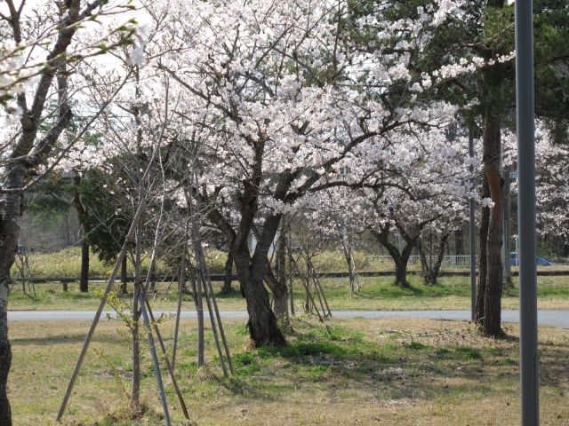 病院の敷地内にある桜の木が満開となり、見ごろを迎えました。